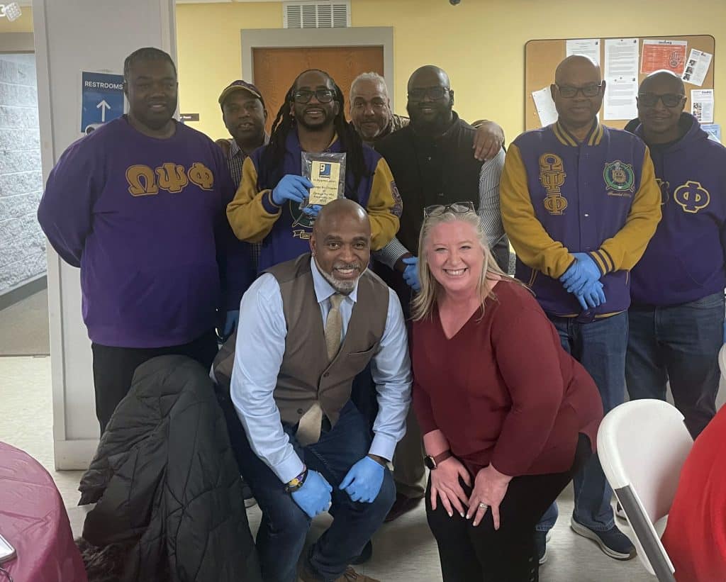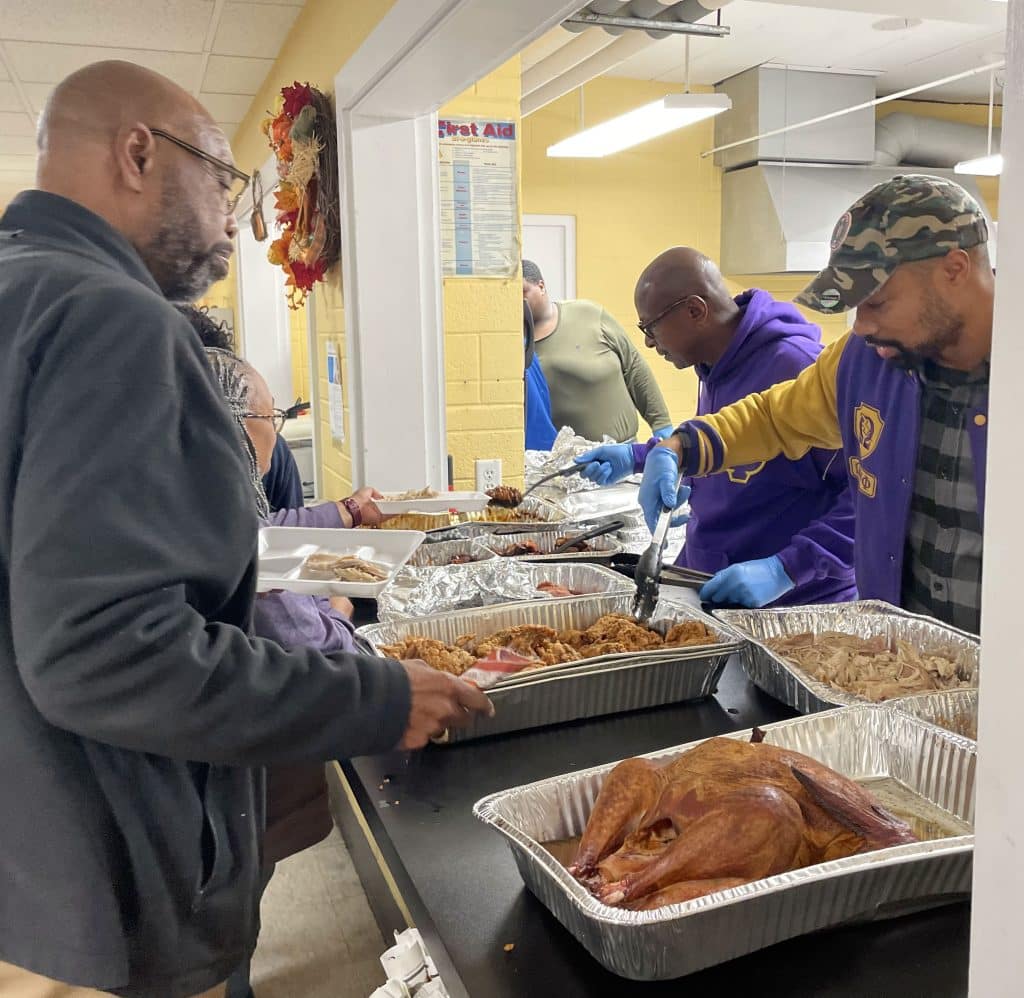 Guests enjoyed a holiday meal prepared by several local vendors, including Gertrude’s Taste of Heaven, Bells’ Finest BBQ, PT’s, and Godfather’s Pizza, along with incredible volunteers who donated time and prepared turkeys, ham, dressings, and desserts.